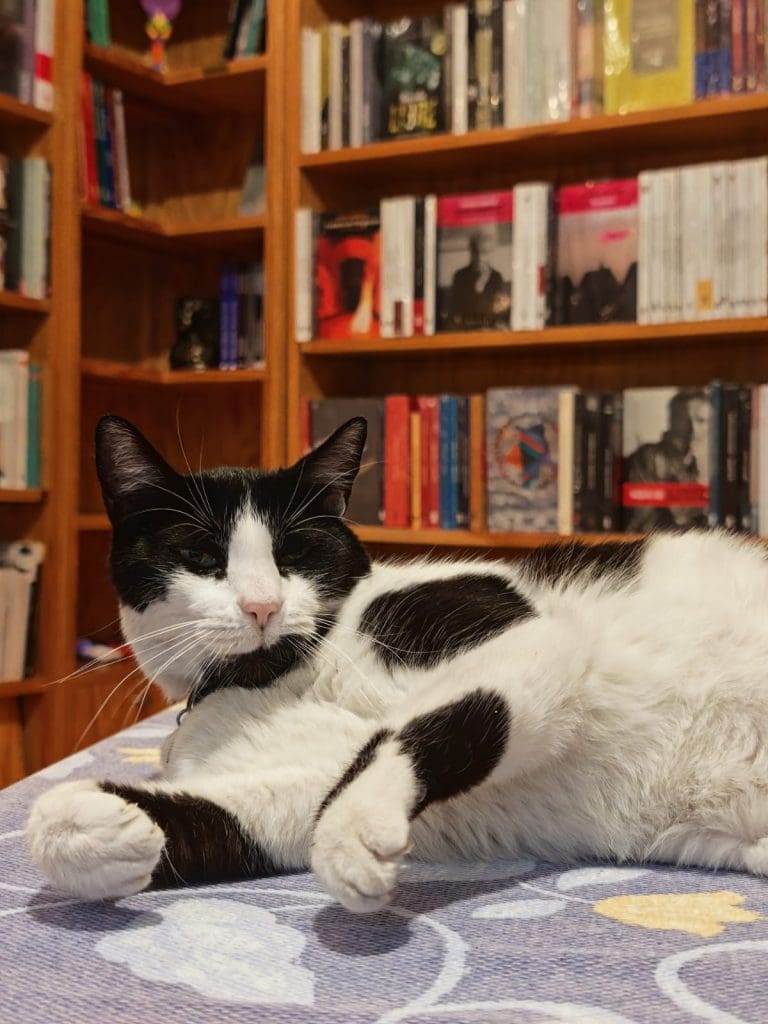 En nuestra otra barra en la Cuauhtémoc se ve por ahí al jefe, que es nuestro gatito host que encanta a todos con su nobleza y cariño, se llama Dominó y es ya emblema del café y de la colonia.