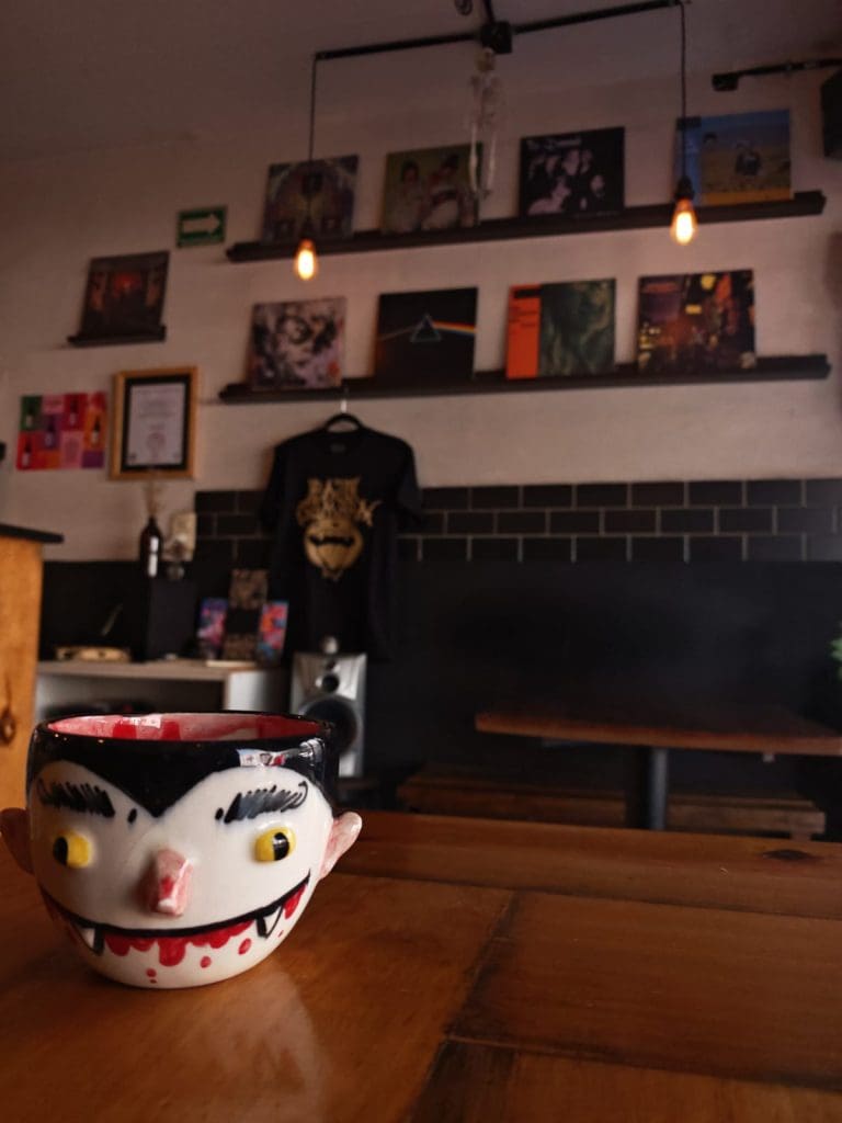 También tenemos el muro de los discos de vinyl que muchos piensan que solo es decoración pero están a la venta. Así como objetos diversos que van y vienen y algunos se vuelven parte del espacio pues hasta nos identifican por ellos en ocasiones.