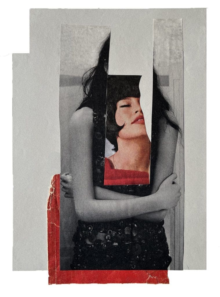 For a while now, I have been completely focused on analog collages. I love the process: finding, collecting, cutting, deconstructing, selecting, recomposing, pasting… Over the years, I have used different media (painting, drawing, engraving, photogravure), and my personal conception of collage has been shaped at the intersection of all these practices.
