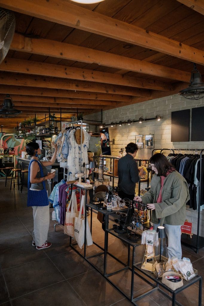 Darse un rol por el área de tienda mientras espera su café, descubrir las distintas marcas que albergamos y observar la exhibición temporal o el artista invitado que tenemos detrás de la barra de café.