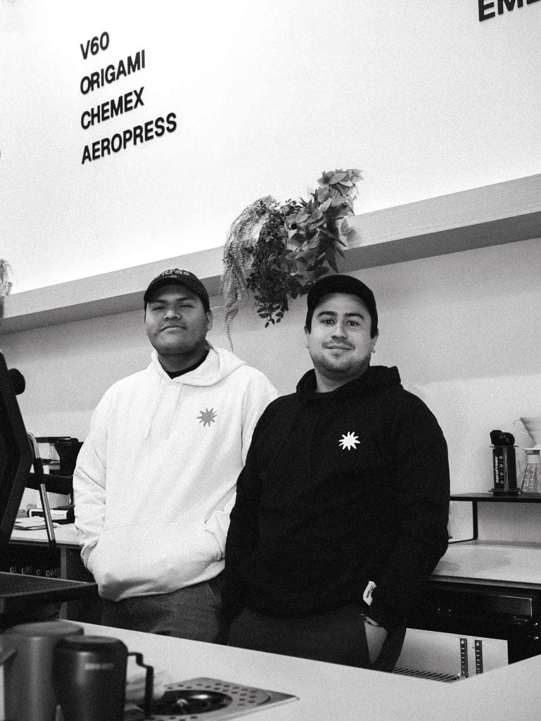 El contraste de la barra. Fue una decisión muy pensada: barra blanca, completamente limpia, contra elementos negros — la máquina, el molino, la tarja, el grifo, los accesorios. No es decoración accidental, es una conversación visual entre lo que parece simple y lo que esconde precisión. Ese contraste es una especie de metáfora de lo que hacemos: superficies limpias, procesos complejos. Y luego está la barra de brew — cada extracción que sale de ahí es manual, individual, hecha para una sola persona en ese momento. En un mundo donde todo tiende a la automatización, insistir en ese gesto es casi una declaración.