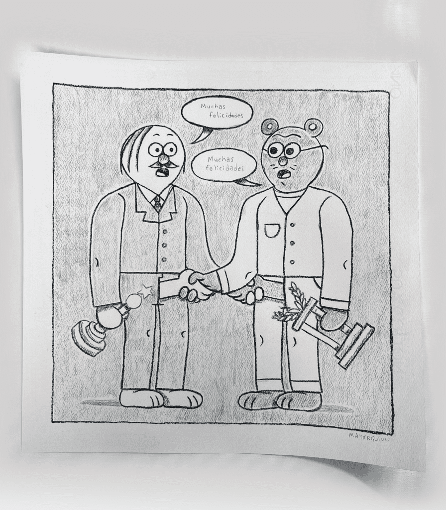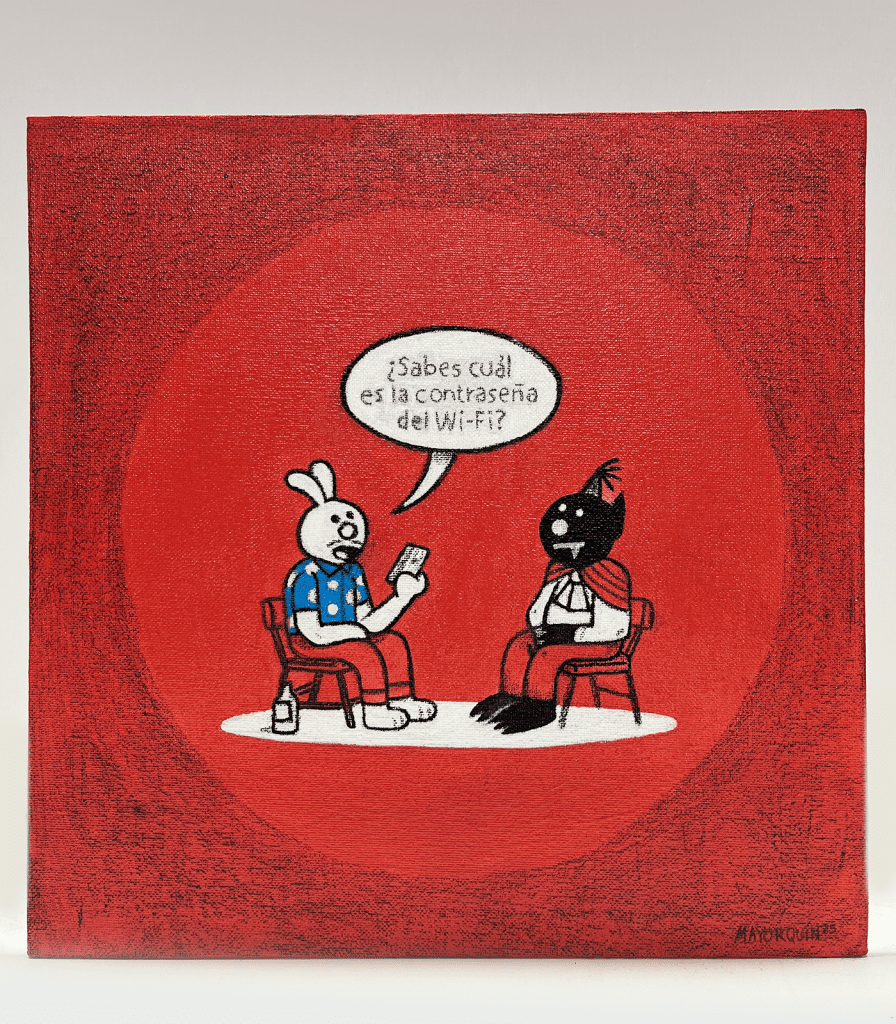 En general esa expo y el cómic se tratan acerca de hacer más cosas buscando simplemente sentirme alineado con mi obra y mis ideas y no depender o buscar feedback de las redes o el internet. Mucho del trabajo que hice este año realmente no lo publiqué en redes, un poco porque tengo años que todo lo que hago vive mucho en internet y me gusta la idea de tener cosas que no: que solo existan fuera de ese lugar, en un espacio físico.