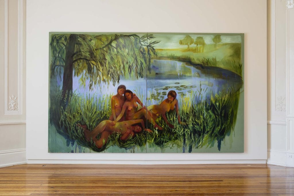 Vanessa Raw, And So It Is, 2025, óleo sobre lino, 230 × 400 cm. Cortesía de Carl Freedman Gallery y Georgina Pounds Gallery.
