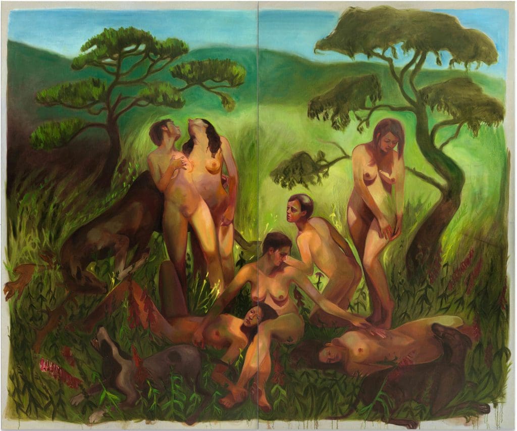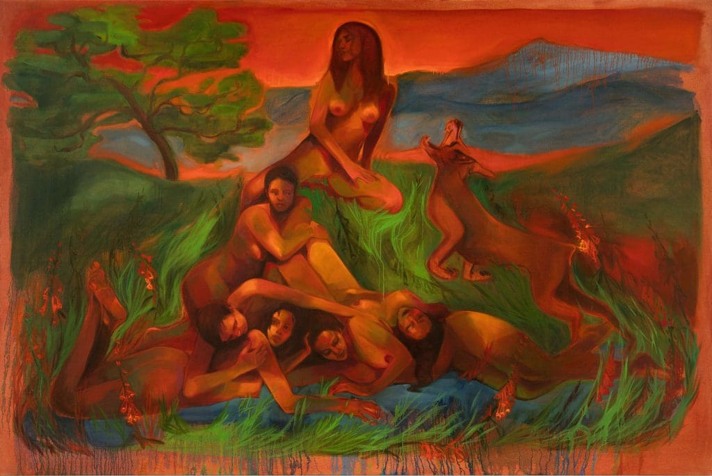 Creo que abordo el cuerpo femenino como un paisaje vivido (más que como un objeto). Es un espacio que alberga memoria, emoción e instinto, profundamente conectado con el mundo natural. En las pinturas, los cuerpos a menudo se fusionan con animales y paisajes porque entiendo la naturaleza como una extensión del cuerpo, no como algo separado de él.