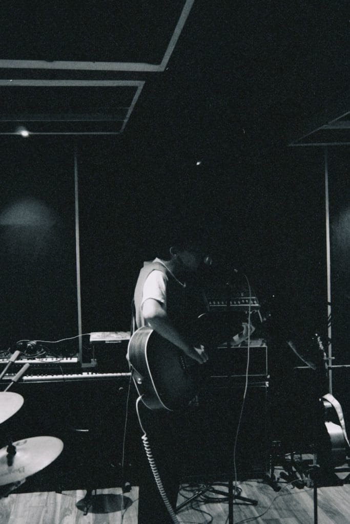 Todo nació a raíz de un experimento que hice en mi cuarto, estaba aprendiendo a grabarme, así que grabé unas guitarras y unas melodías que no salieron en la versión final, escribí las primeras líneas con lo primero que se me vino a la mente; era 2024 y una semana antes me había encontrado al papá de una ex novia, pero no me atreví a saludarlo.