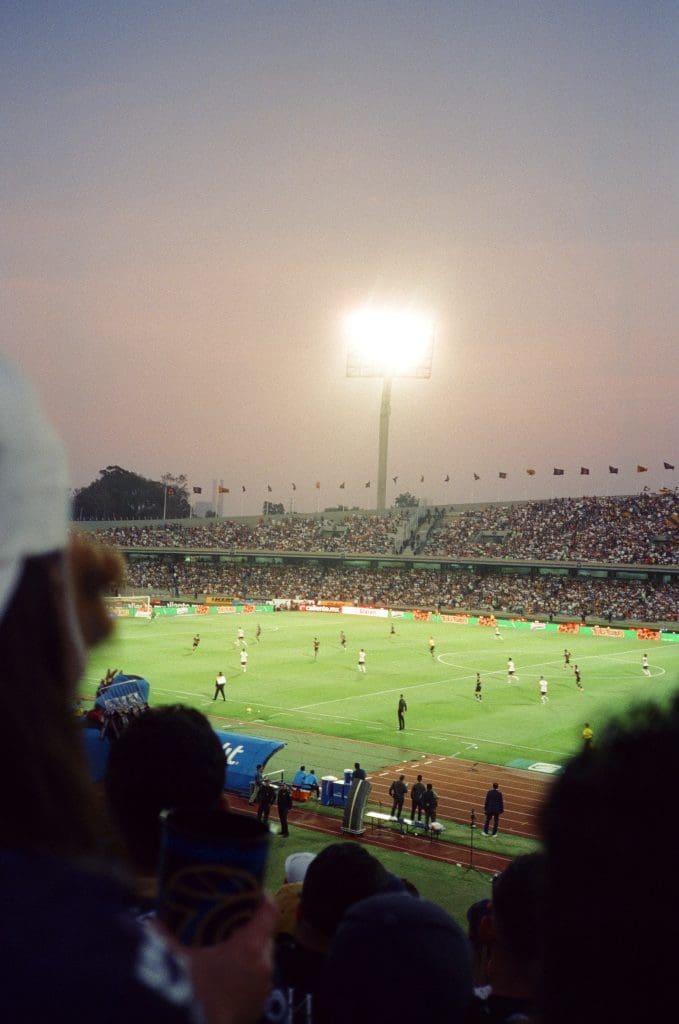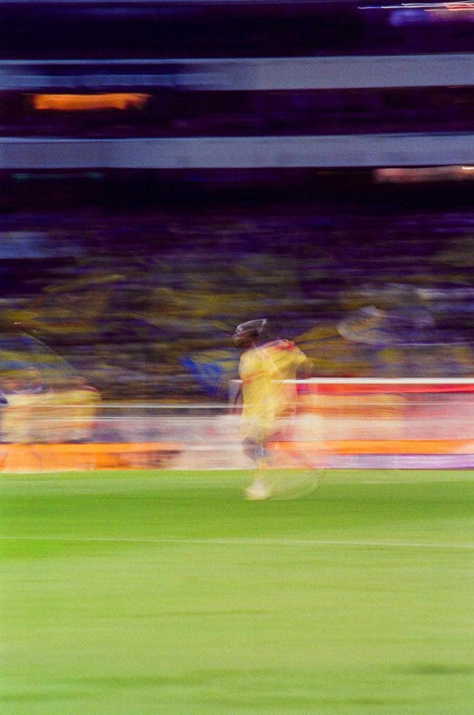 Estas fotos me han enseñado a ser paciente y a observar con más intención. En un estadio de fútbol, o incluso en sus alrededores, todo se mueve constantemente. Apuntar una cámara puede ser invasivo, así que encontrar el momento justo para disparar requiere esperar, mirar y respetar el ritmo de lo que pasa alrededor. Es un ejercicio de sensibilidad, más que de inmediatez (y más haciéndolo en análogo).